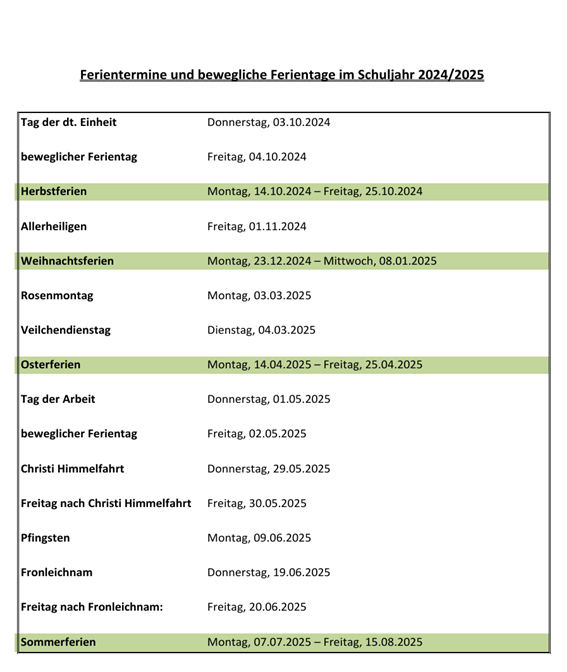 Nur am Tag der Zeugnisausgabe (letzter Freitag im Januar + letzter Tag des Schuljahres) endet der Unterricht für alle um 12.00 Uhr.